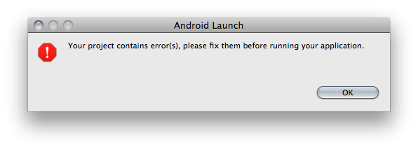 Your project contains error(s), please fix them before running your application.